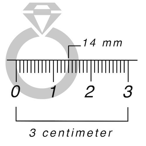 Voorbeeld: Kom je tijdens het ringmaat meten uit op 14 mm? Dan heb jij ringmaat 14. Zo simpel is het!