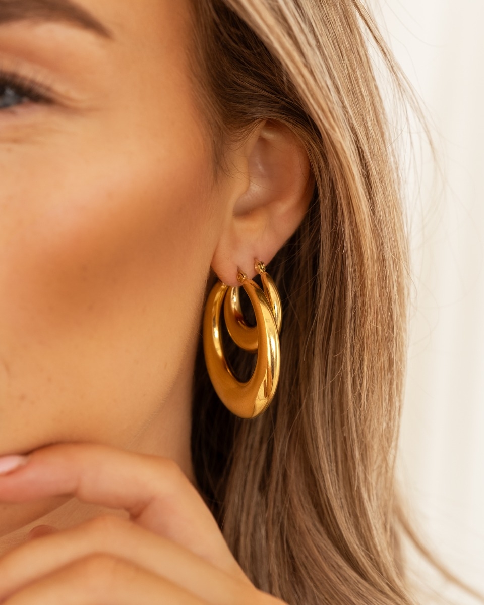 Voor een elegantere, minimalistische uitstraling kun je de kleinere creolen mooi combineren met ketting oorbellen en stud oorbellen. Zo creëer je een speels effect, zonder dat de look te druk wordt. Wil je wat kleur aan je look toevoegen? Ga dan voor oorbellen met steentjes!