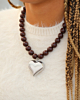 Durf te shinen met deze zilveren variant van de bruine kralen ketting met groot hart! De diepe bruine kralen zorgen voor een warme, chique uitstraling, terwijl het grote hart een speels en trendy statement maakt. Draag hem solo of combineer hem met een lange ketting en bijpassende armbanden voor een persoonlijke, gelaagde look. Ook super leuk als cadeau voor je bestie, moeder of iemand die van opvallende sieraden houdt. Alles wat je nog moet weten over deze kralenketting: