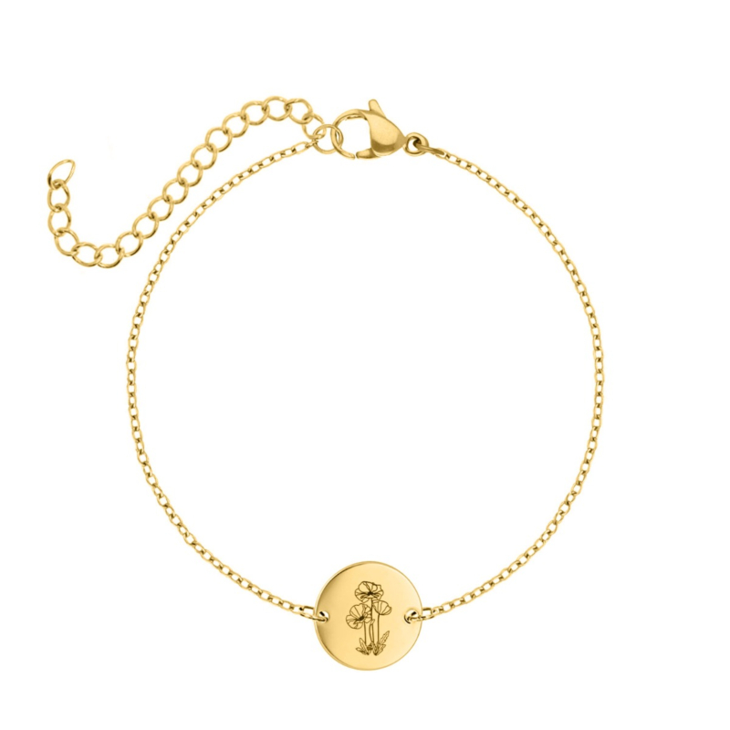 Laat jouw sieradencollectie stralen met deze prachtige geboortebloem armband goudkleurig! Dit gepersonaliseerde armbandje is niet alleen super stijlvol, maar ook heel betekenisvol doordat je jouw eigen geboortebloem laat graveren. Hoe bijzonder is dat?! Combineer de armband met andere sieraden of shop nog meer armbanden en/of kettingen voor de ultieme mix & match look. Met deze geboortebloem armband maak je jouw armparty helemaal af. Perfect om cadeau te doen of natuurlijk gewoon voor jezelf! Alles wat je nog meer wilt weten over de geboortebloem armband goudkleurig vind je hieronder: