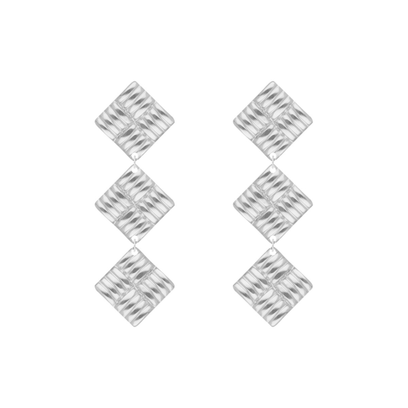 Statement lovers opgelet! Onze Oorbellen Roxy in het zilver zijn echte eyecatchers. De drie speelse vierkante schakels met geribbeld patroon zorgen voor een stoere, maar toch elegante uitstraling. Deze oorbellen geven iedere look nét dat beetje extra. Perfect voor dagelijks gebruik, maar ook ideaal als finishing touch voor een feestelijke outfit. Roxy is zo’n paar dat je één keer draagt en nooit meer wilt afdoen! Alles wat je verder nog moet weten: