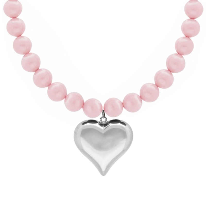 Roze kralen ketting met hart