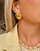 Big hearts, big vibes! De statement stud oorbellen hartje goudkleurig zijn echte eyecatchers voor jouw sieradencollectie. Het grote hartje maakt deze studs lekker opvallend, terwijl de goudkleurige finish zorgt voor een warme, stijlvolle uitstraling. Cute én bold tegelijk, precies wat je wilt. Deze oorbellen zijn perfect als je look wel wat extra’s kan gebruiken. Draag ze solo als statement piece of combineer ze met subtiele oorbelletjes of een earcuff voor een speelse earparty. Eén ding is zeker: met deze hartjes steel jij de show. Alle details die je nog moet weten over deze oorbellen: